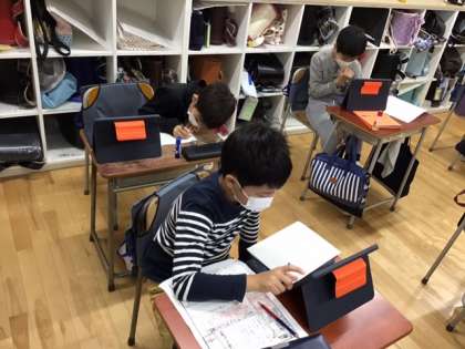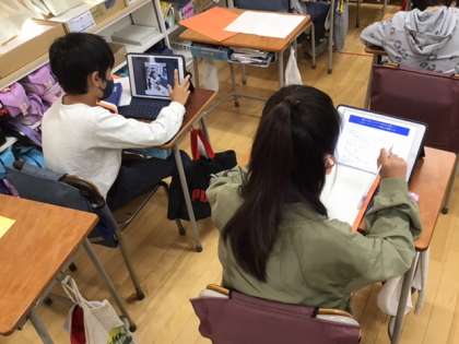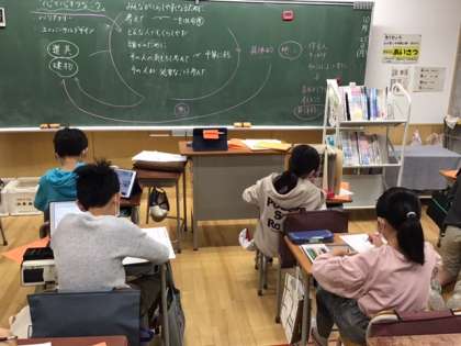 総合的な学習の時間です。「心と心をつなごう」みんなが暮らしやすくなるために大切なことは何か、一生懸命に考えています。