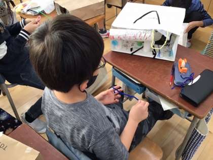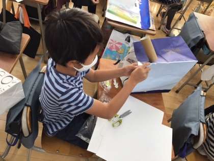 図工の時間です。袋の中には、どんな世界が広がっているのでしょうか? 楽しみですね。