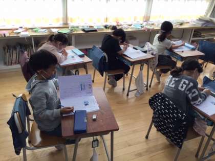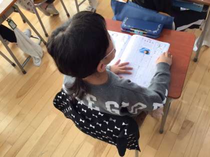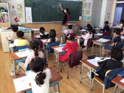 国語の時間です。漢字の成り立ちや注意点なども、しっかり学習しています。