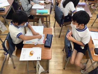 算数の時間です。ボールの重さをはかりたいときは、どのように工夫すると良いのかを話し合っています。