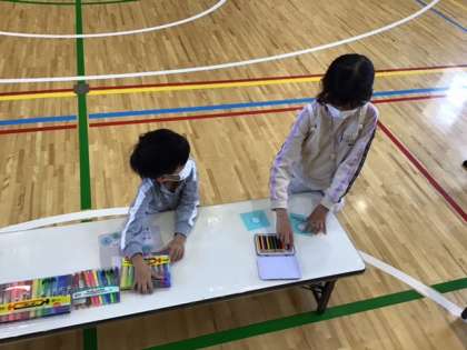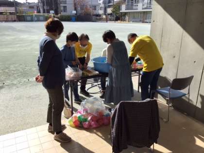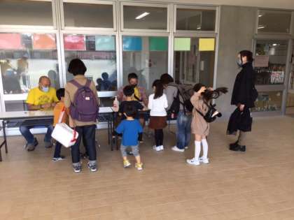 本当に久しぶりのイベントを開催しています。体育館では、缶バッジづくりをしています。