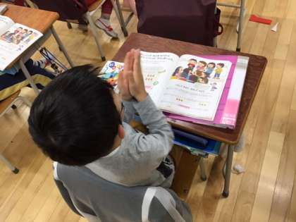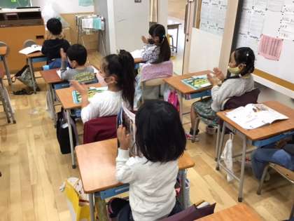 音楽の時間です。「さがしてみよう ならしてみよう」きれいに大きな音で音楽を楽しんでいます。