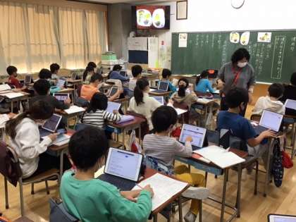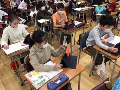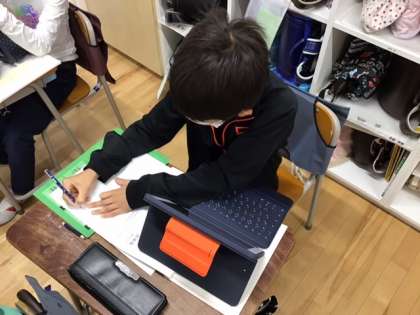 国語の時間です。「伝わる言葉」慣用句の意味を調べて、それぞれが例文を作っています。