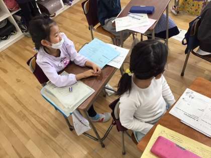 国語の時間です。「そうだんに のってください」公開相談室に挑戦しています。