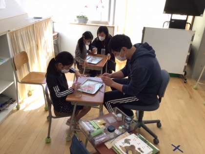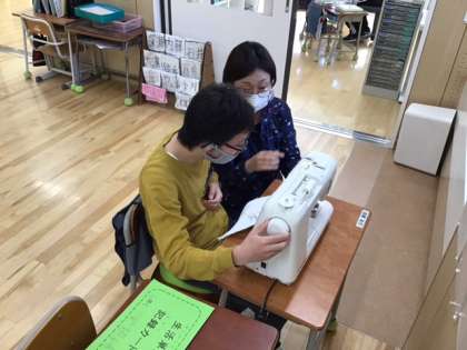 手芸の時間です。6年生は、ミシンに挑戦しています。卒業制作の雑巾づくりです。