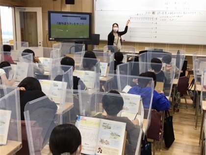 音楽の時間です。「待ちぼうけ」詩と音楽の結びつきに気をつけて鑑賞しています。