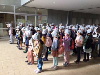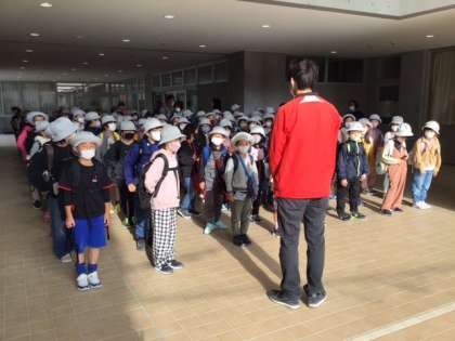初めての社会科見学に出かけます。素晴らしい態度で出発式に臨んでいます。