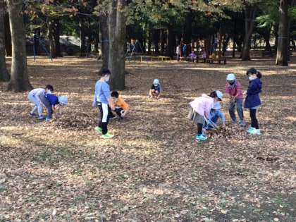 「だるまさんがころんだ」をしたり、落ち葉を集めてクッションを作ったりと楽しく過ごしました。