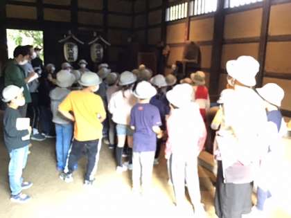 世田谷代官屋敷の見学をしています。ガイドの方の説明を熱心にメモしています。