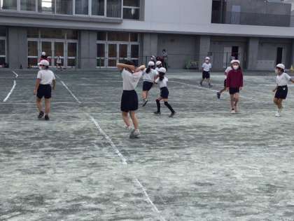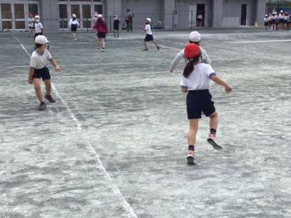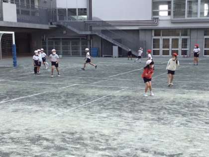 体育の時間です。こおり鬼で体をたくさん動かしています。