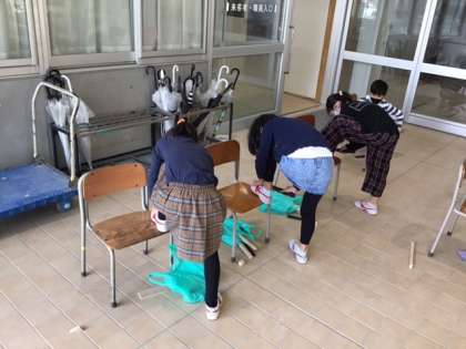 図工の時間です。ノコギリに挑戦しています。集中してくださいね。