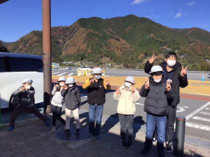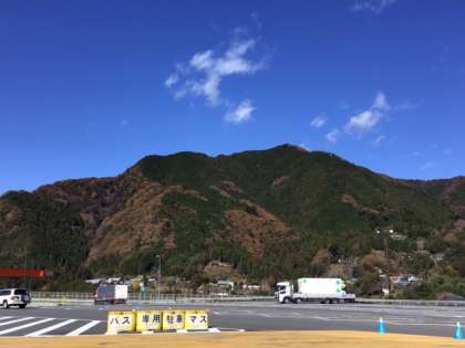 談合坂サービスエリアに到着しました。雲ひとつない青空、紅葉もきれいです。