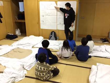 ミーティングをしたあと、就寝準備をしています。明日は、ハイキングをします。では、お休みなさい。