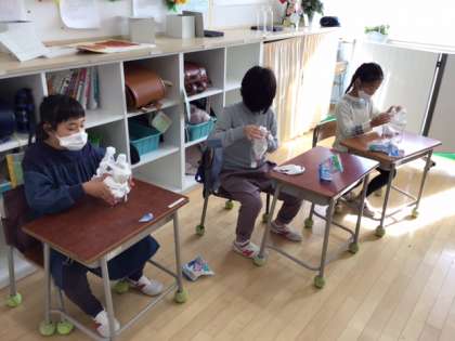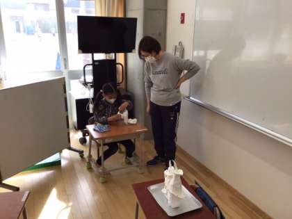 図工の時間です。高学年のみなさんが、河口湖移動教室から帰ってきました。絵や粘土に取り組んでいます。