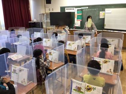 音楽の時間です。「あのね、のねずみは」歌詞の意味を考えて、その感じがでるように歌います。