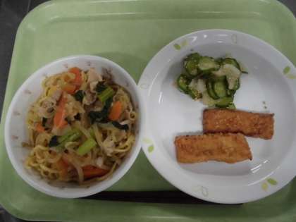 献立 あんかけラーメン、いかのかりんとう揚げ、きゅうりと大根のごま風味、牛乳