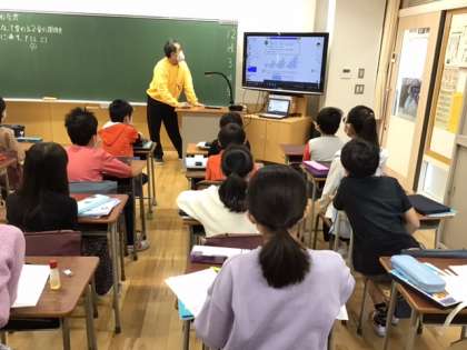 算数の時間です。ともなって変わる2つの量の関係を表や式にして表しています。