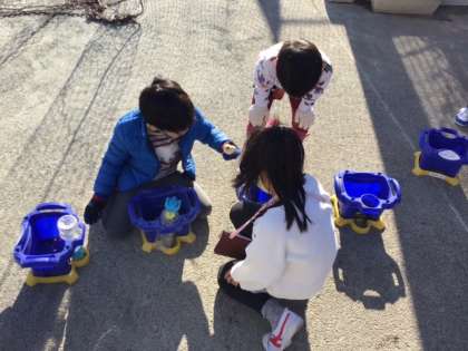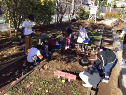 生活科の時間です。これから一人一人の鉢で、ヒヤシンスとチューリップを育てます。