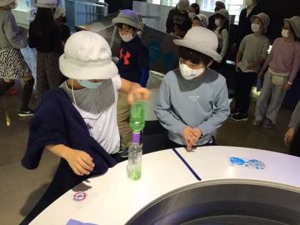 サイフォンの原理を体験したり、霧の空気砲を飛ばしてみたり、これは楽しいね!