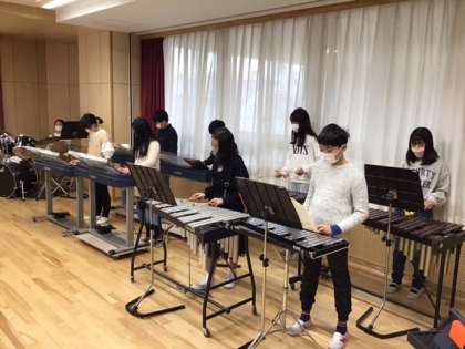 音楽の時間です。個人、セクション練習のあと、全体での合わせに取り組んでいます。