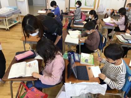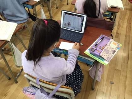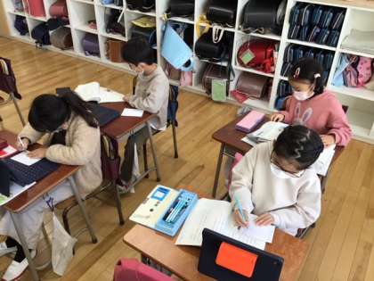 国語の時間です。「わたしは おねえさん」すみれちゃんがしたこと、言ったことで、心に残ったことをカードにまとめています。