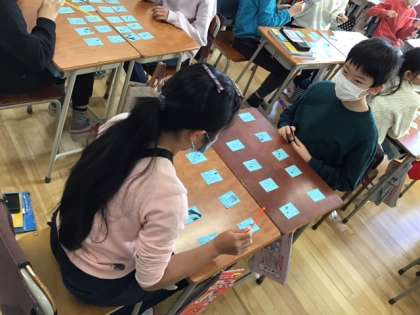 社会科の時間です。歴史上の人物当てゲームをしています。スリーヒントで誰かを当てます。