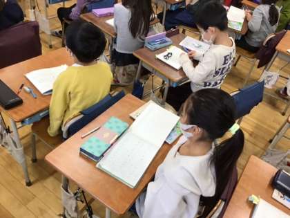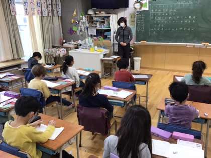 算数の時間です。「水のかさくらべ」水のかさをくらべるときに、どんな方法があるのかを考えています。