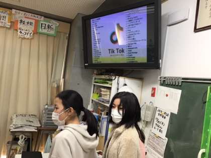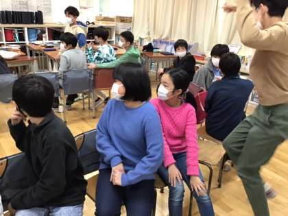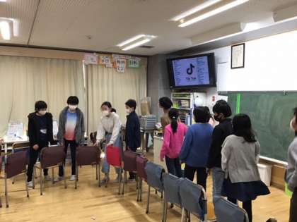 学級活動の時間です。お楽しみ会の様子です。担当者が中心になって、楽しめる企画を作りました。