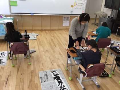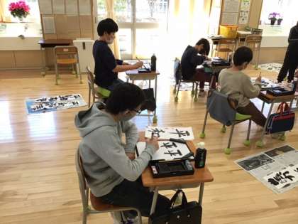 3年生から6年生は、毛筆による書き初めの練習をしています。