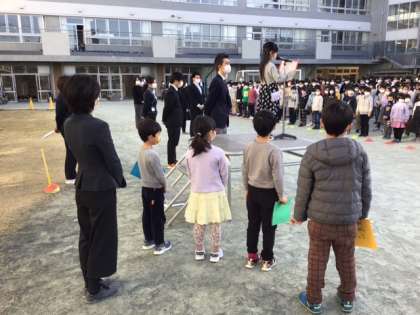 2学期の終業式を迎えました。子どもたち一人一人が大きく成長した2学期でした。1年生、くるみ学級の代表児童が、2学期を振り返って発表しました。