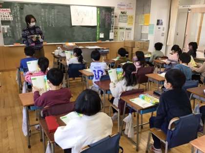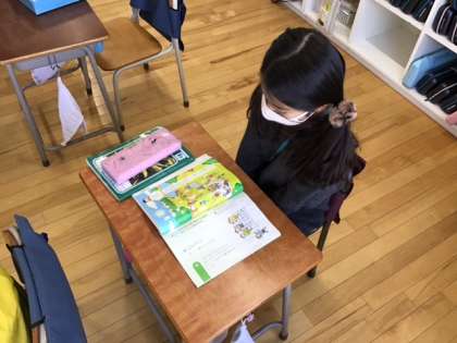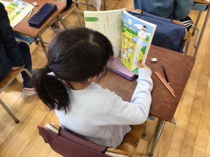 国語の時間です。「おにごっこ」大事な言葉に気をつけながら、ていねいに文章を読んでいきます。