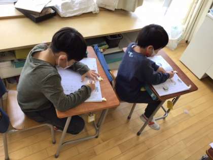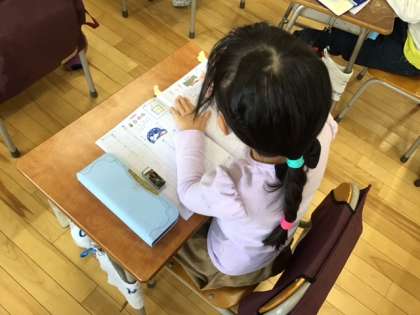 国語の時間です。漢字の学習に取り組んでいます。筆圧が強くなりましたね。