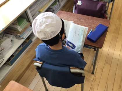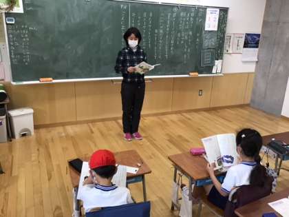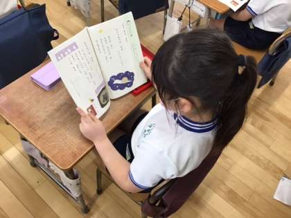 国語の時間です。「かたつむりの ゆめ」声に出して、元気いっぱい読みます。