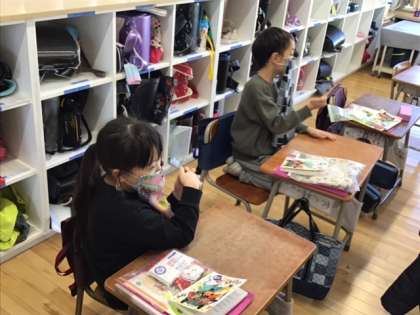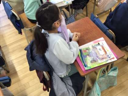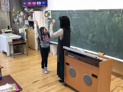 音楽の時間です。「おちゃらか ほい」手あそびをしながら、楽しい歌います。