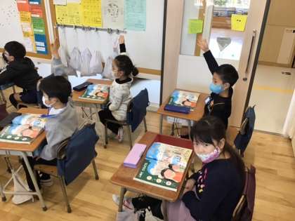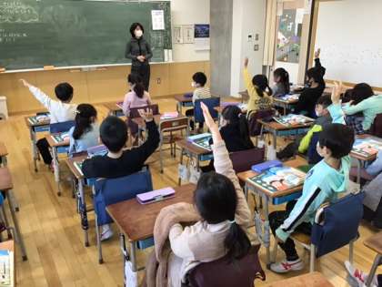 生活科の時間です。冬ならではのものをたくさん見つけて、発表しています。