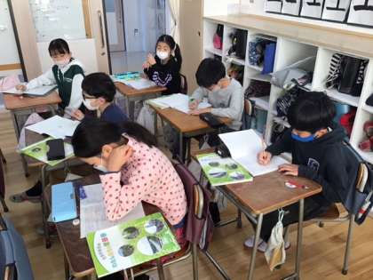 社会科の時間です。私たちの地域には、交通事故を防ぐためにどんな工夫があるのかを考えています。