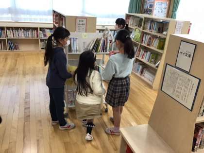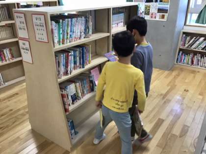 読書の時間です。とてもマナーよく、図書室を利用しています。立派ですね。