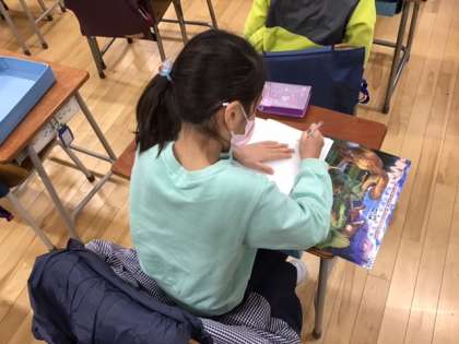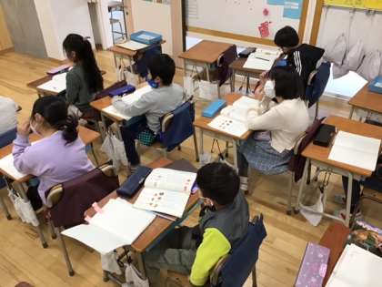 国語の時間です。「たのしいな ことばあそび」一字増やして、言葉を変身させます。