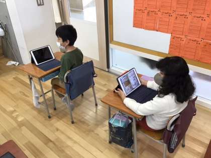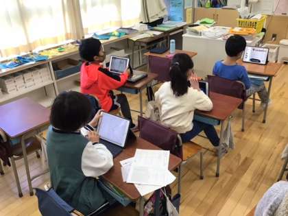 国語の時間です。それぞれが調べた「あそび」の発表準備をしています。