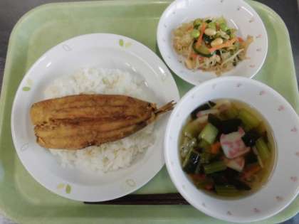 献立 いわしのかば焼き丼、まめまめサラダ、節分すまし汁、牛乳