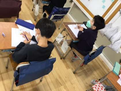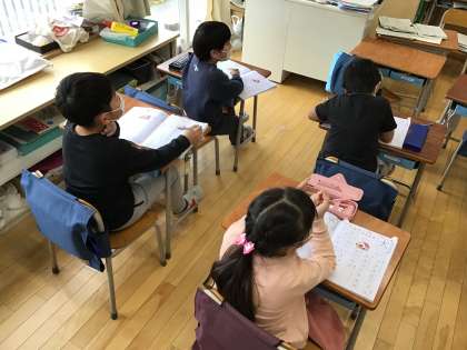 ?国語の時間です。漢字の学習に取り組んでいます。「早」を使った文を作っています。