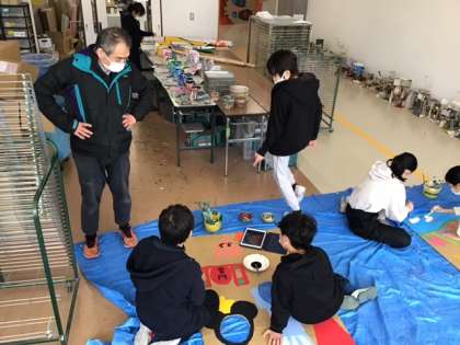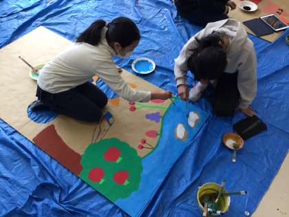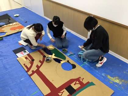 図工の時間です。「日本全国顔ハメ看板ツアー」看板が続々と完成しています。