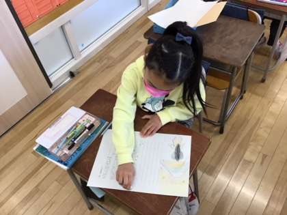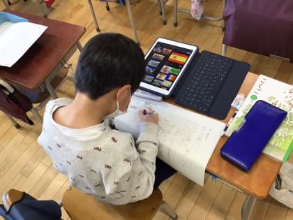 国語の時間です。「詩」の学習です。生き生きとした作品が出来上がってきました。