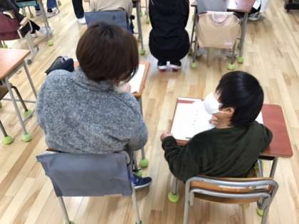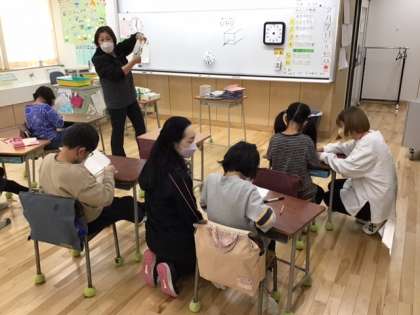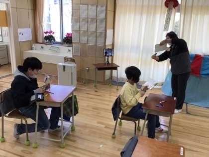 図工の時間です。牛乳パックに切り込みを入れて、UFO を作っています。