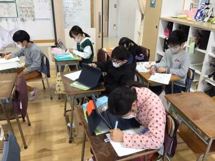 社会科の時間です。「安全なくらしを守る」学習のまとめとして、ポスターを作成しています。