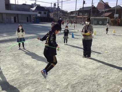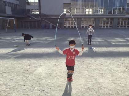 体育の時間です。なわとびカードを活用して、1級よりもすごい、特級を目指して頑張っています。