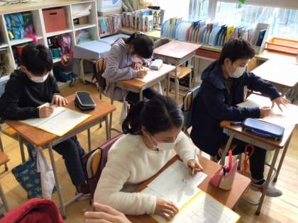 6年生は、今週のめあてを考えています。「友達の良いところをたくさん見つける1週間にしたい」という、めあてがありました。