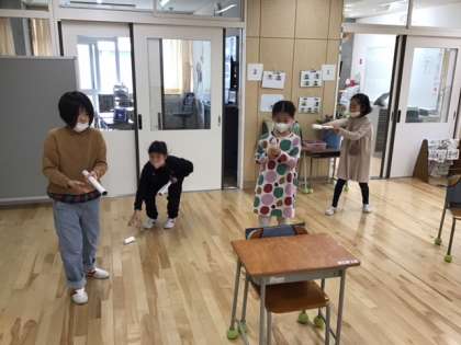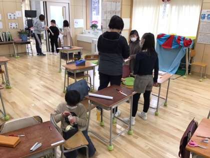 図工の時間です。「手づくりロケット」に挑戦しています。とてもよく飛びますね!
