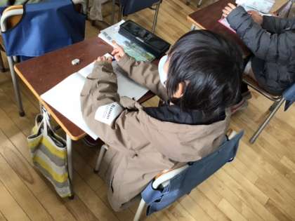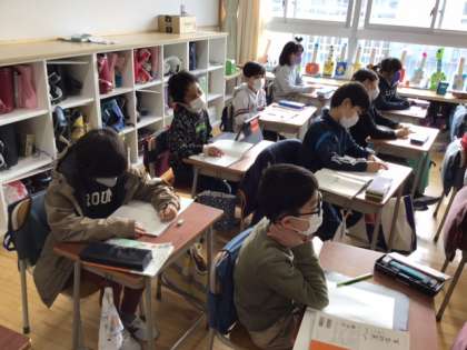 国語の時間です。「つたわる言葉で表そう」最近の出来事を200字程度で書き進めます。