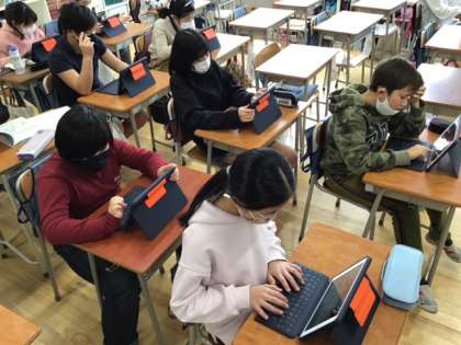 保健の時間です。生活習慣病について、それぞれが調べるテーマを決め、分かりやすくまとめています。